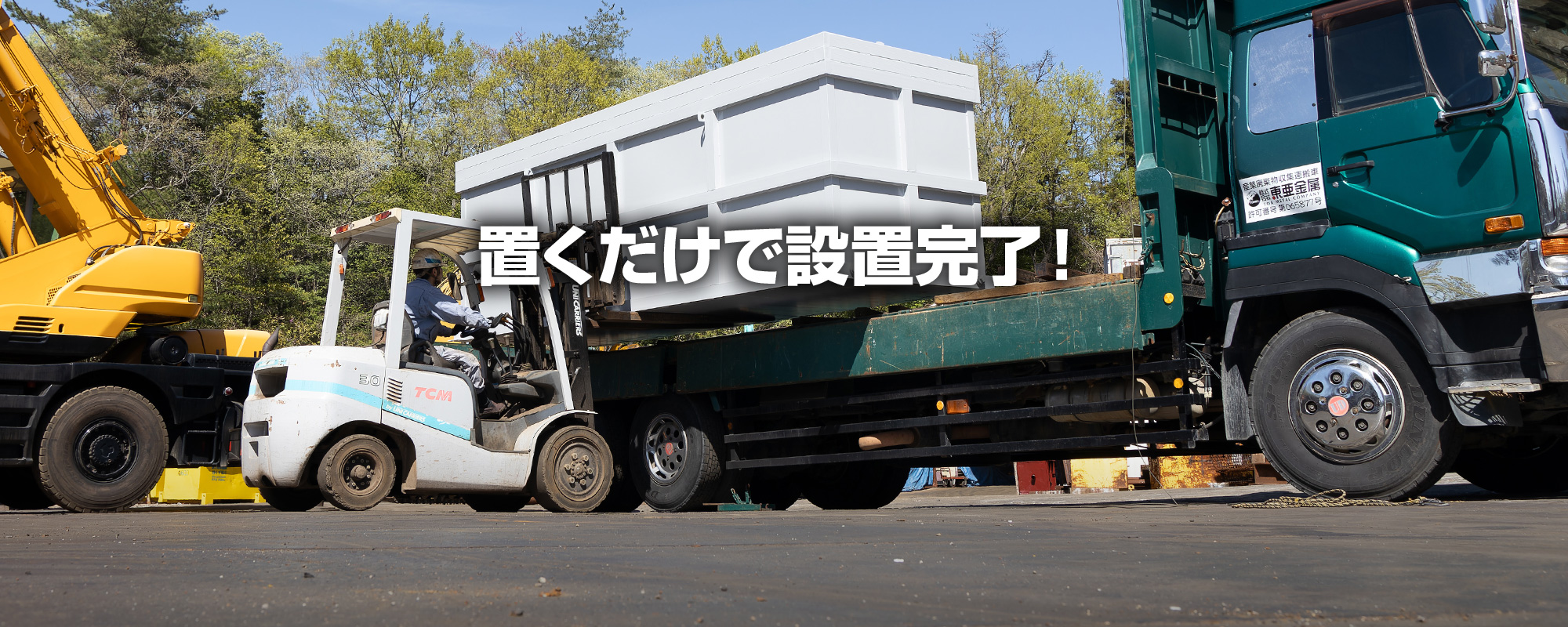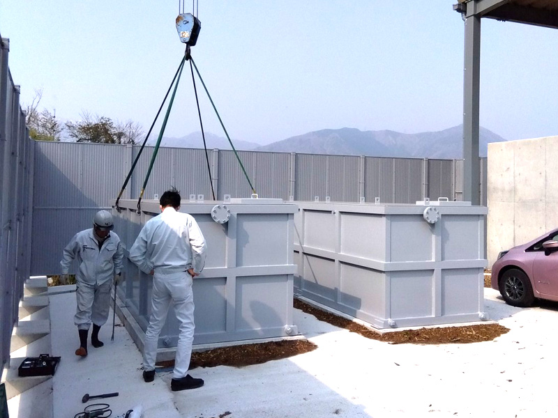 「置くだけ防火水槽」は、消火設備の水源としての利用が可能な地上設置型水槽です。
