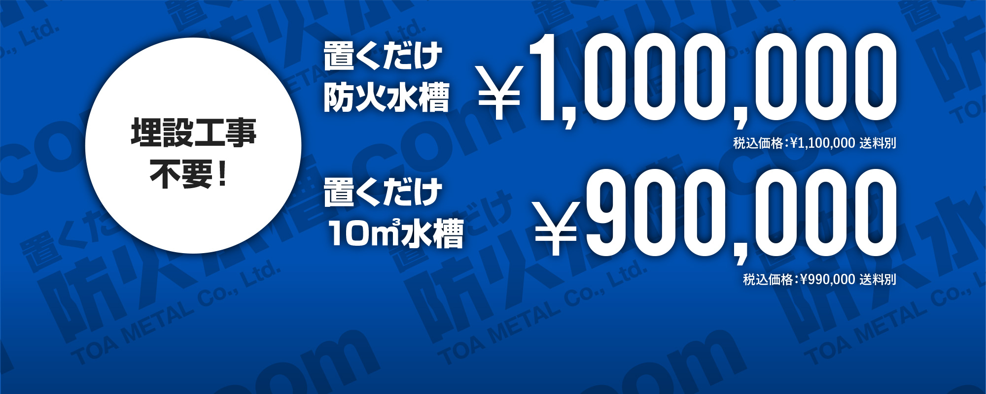 両タイプとも10㎥以上の容積がありますが、消火設備の水源として設置する場合は、各自治体により設置基準・判断が異なる可能性がありますので、お客様にて所轄の消防署等に確認をしていただきますようをお願いいたします。