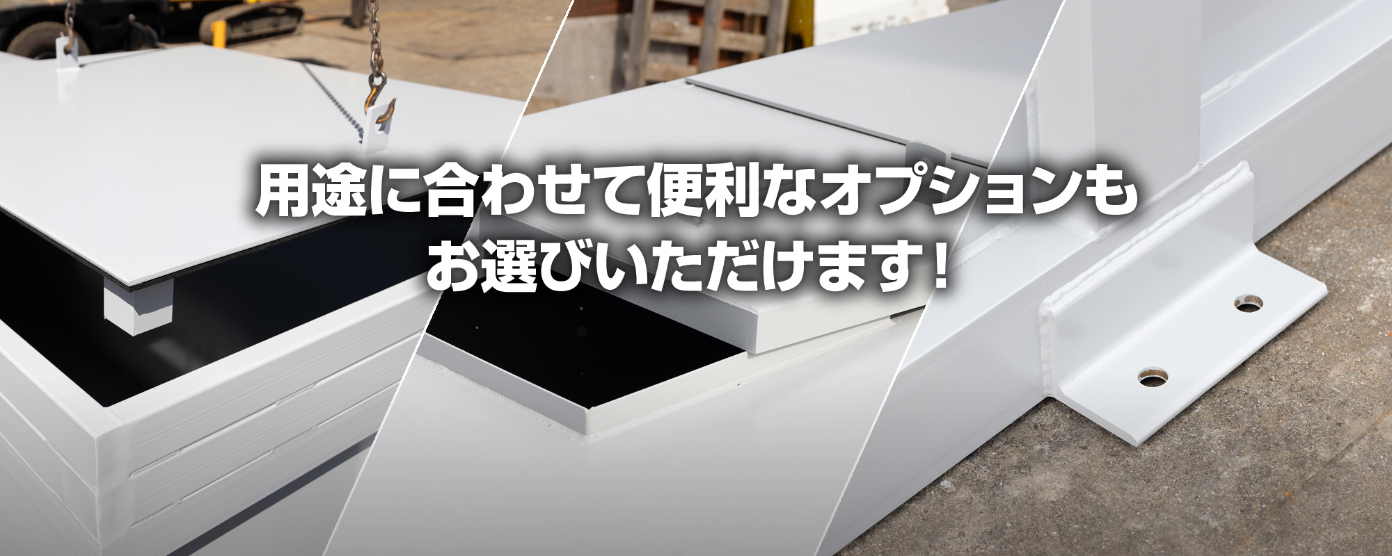 蓋が必要な場合にはセパレートハッチやセパレートハッチ用の点検口、しっかりと固定して設置するためのアンカー固定用アングル、点検用ハシゴなど、オプション品としてご用意しております。