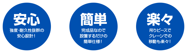 吊りピースを設けておりますので、クレーンでの設置・移動も容易に行えます。